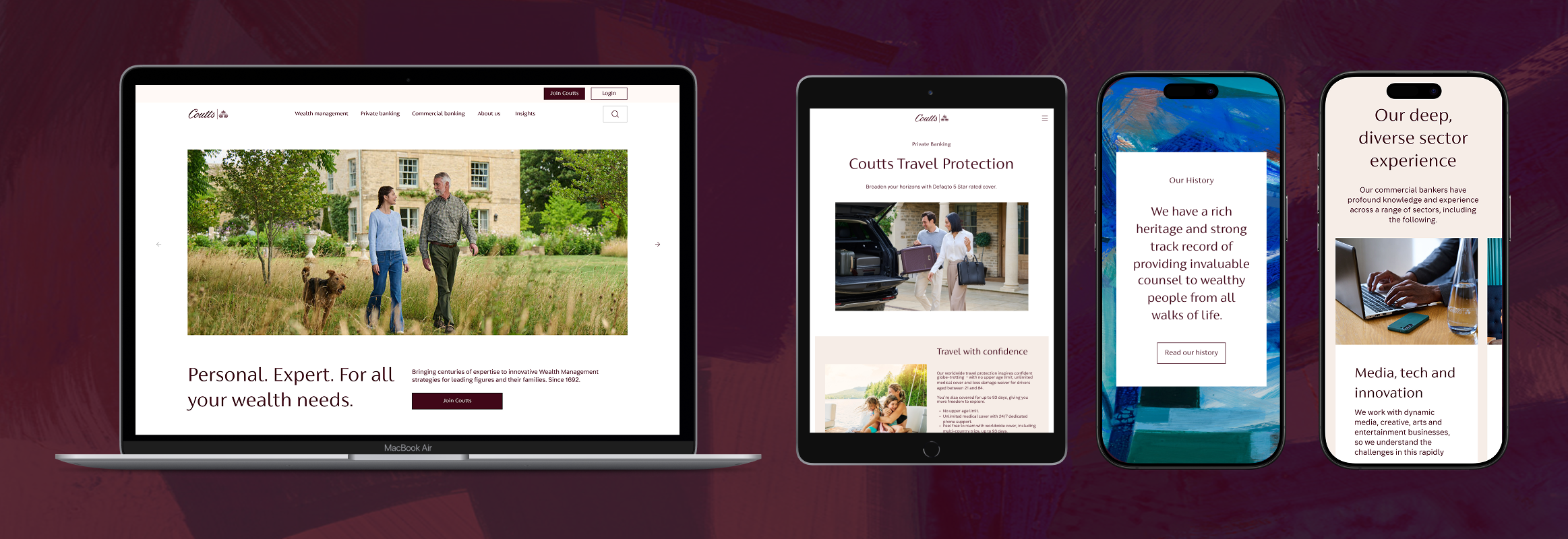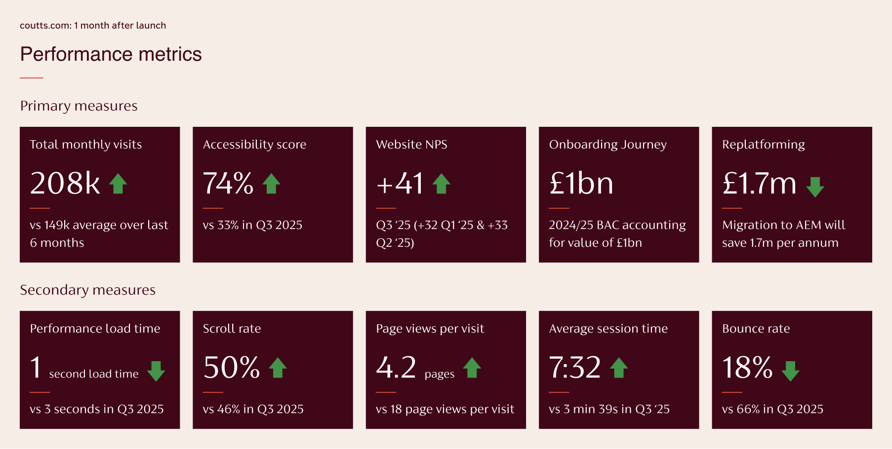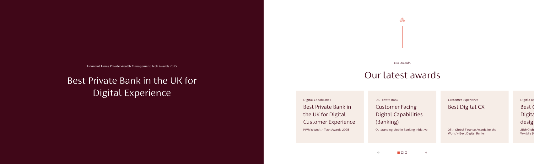Inconsistency & Brand Alignment: A lack of visual cohesion, with an excessive variety of colours and type sizes, meant the site failed to reflect the "modern luxury" feel and sophisticated aesthetic synonymous with the Coutts name.